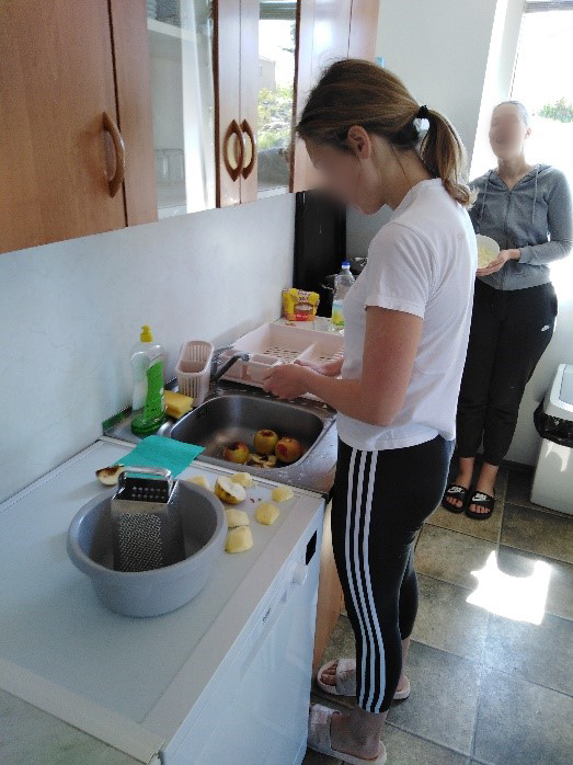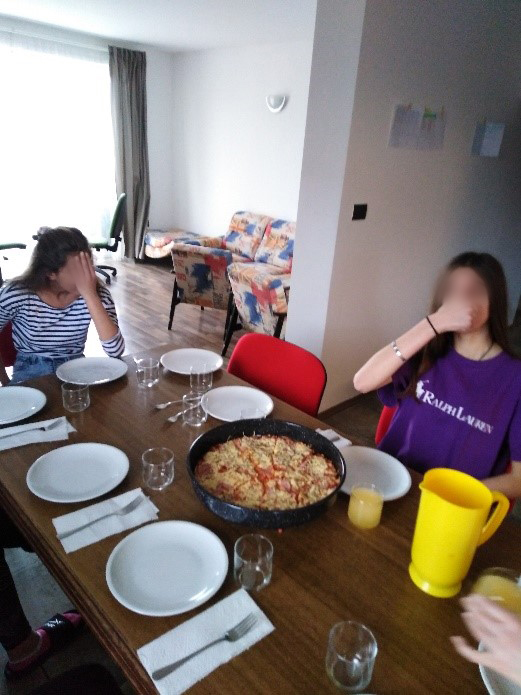 Odgajatelji su nas pripremali da se selimo i da ćemo živjeti u kući, gdje ćemo same kuhati, čistiti i preuzeti veću brigu o sebi. Svi smo bili zabrinuti kako će to funkcionirati. Nismo bili sigurni hoćemo li sve to uspjeti. Prvi ručak u kući bila je pizza. Pripremale su je cure koje su od ranije bile zainteresirane za kuhanje. Ručak je bio odličan! Dan po dan i sve cure uz podršku odgajatelja naučile su kuhati. To nam je svima omiljena aktivnost u kući. Svatko nešto voli da priprema. Imamo eksperte za pite, kolače, slana jela.