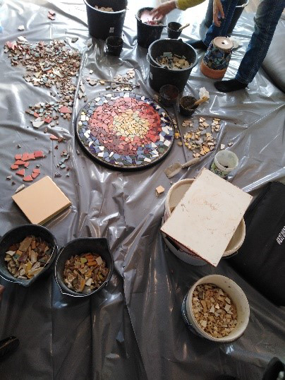 Sada kad je vrijeme sunčano i toplo sjedimo na balkonu pored stola koji smo ukrasili mozaikom.